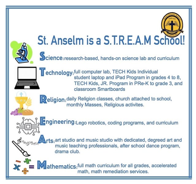 St. Anselm School provides an extensive art program for all students. This past year, we offered our seventh-grade students weekly clay art instruction through the Connelly Foundation Access Program’s visiting Claymobile Art in Residency program. Also, the entire student body proudly displays their magnificent art collections in our Annual Art Show.